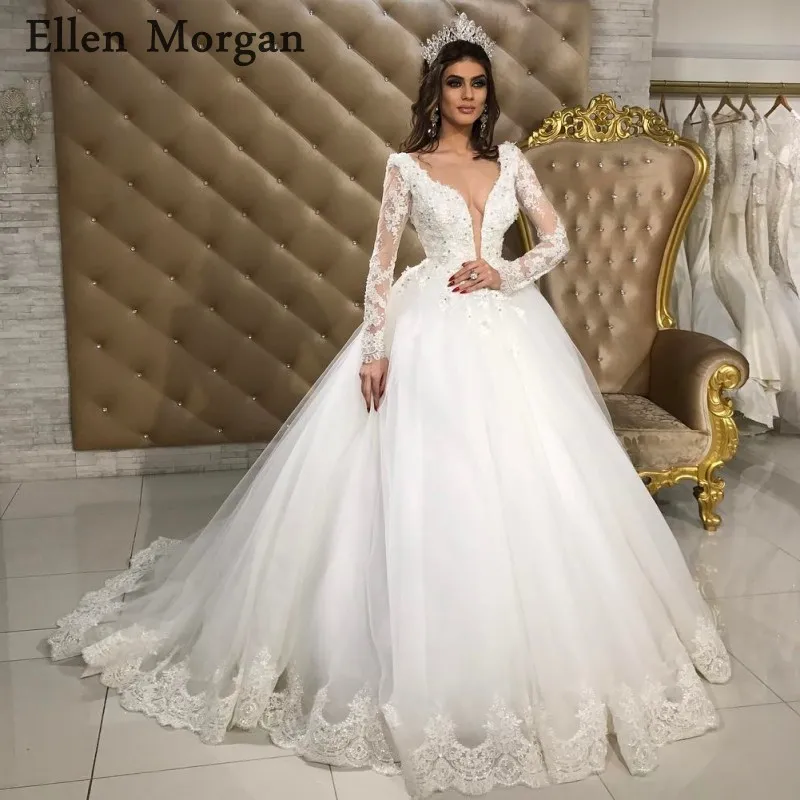 Long Sleeve Wedding Dress Deep V Neck - Popular Ideas 30+ Wedding Dresses With V Neck / Muslim white long sleeve wedding dress pearl beads lace bridal wedding ball gown.